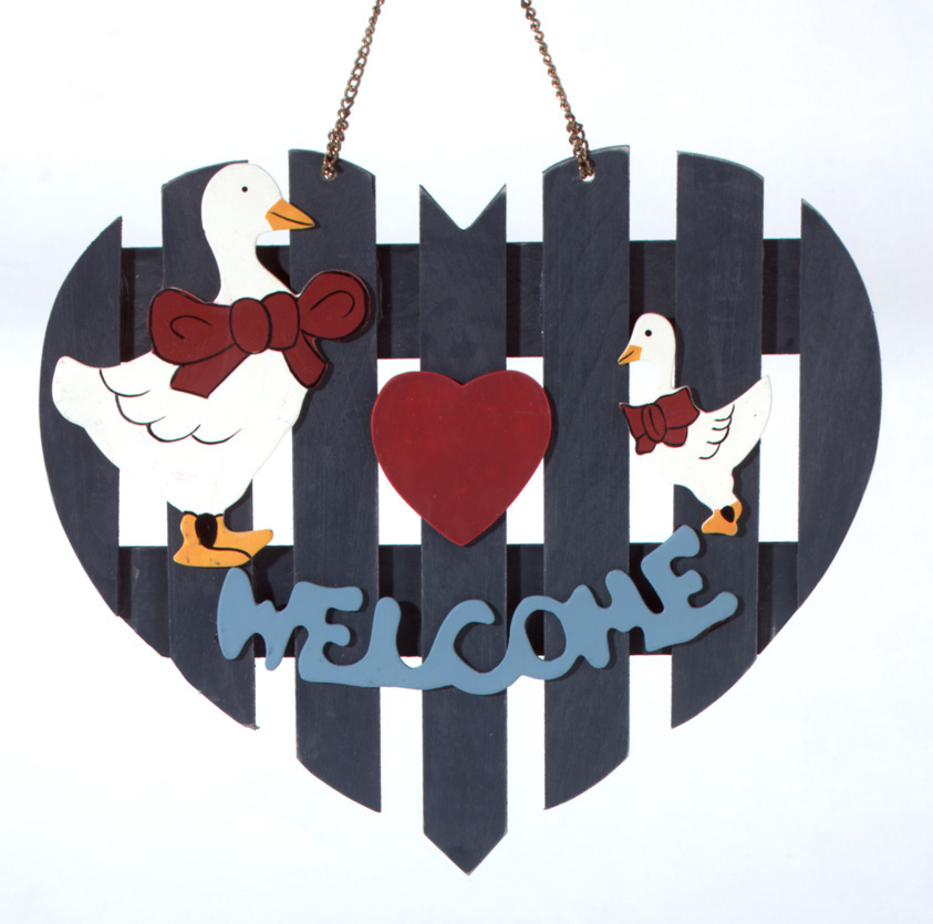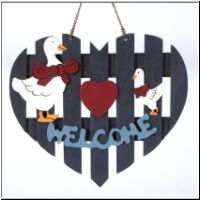 Item # 27007 Let this mama goose and her gosling put a big heart- shaped "Welcome" on your front door ! 11 3/4" x 3/8" x 14 1/4" long. $9.95 |