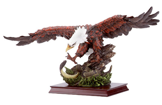 Item # 29140 A duel to the death is portrayed in this detailed alabastrite statue as the stately eagle does battle with a deadly viper. 25" x 9 1/2 x 12" high. $119.95 |