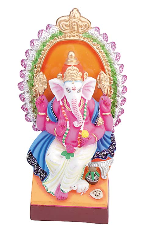 Item # 29380 Brillantly colorful rendition of Sri Ganesha, the deity to witch the Hindu pray before starting any new task. Plaster of Paris. 5" x 3" x 8 3/4" high. $19.95 |