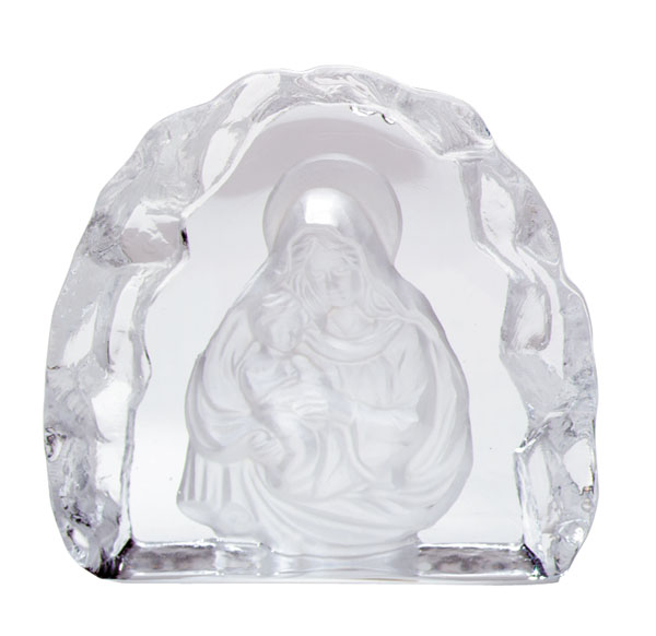 Item # 29431 Mary and the Christ Child are centerpiece of this clear glass art piece,a great addition to any glass collection. 5 3/8" x 1 3/8" x 5 1/4" high. $32.95 Exclusive |