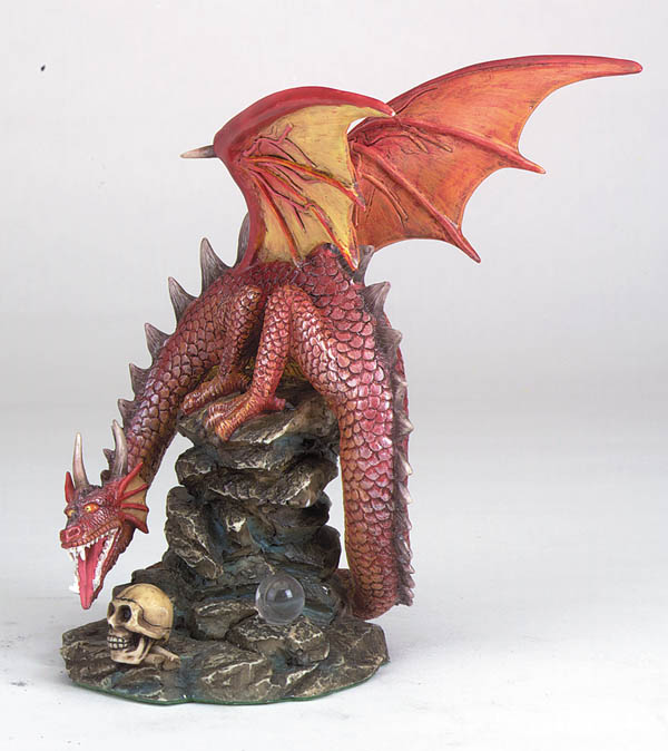 Item # 29564 A flaming orange dragon in it duageon lair guards its master's crystal ball.From the Medieval Legends Collection. 6 1/2" x 5 1/2" x 7" high. $17.95 |