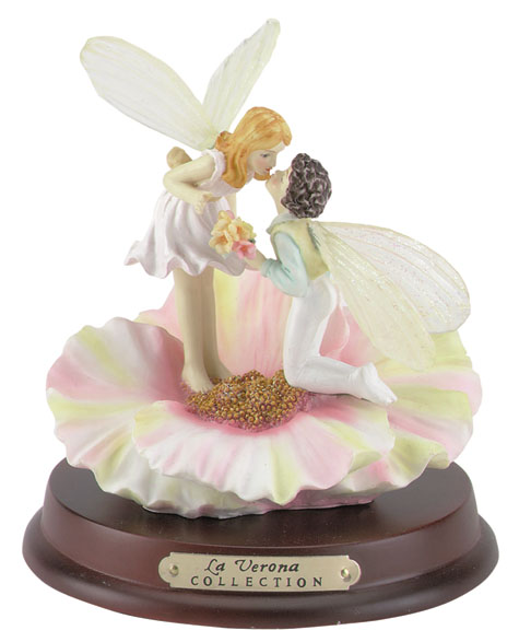 Item # 30082 A fairy lad and lass alight on a pastel blossom to share a sweet kiss and seal their vow of enduring love all the time. La Verona Collection. 4 1/4" x 3 1/2" x 4 1/2" high. $17.95 Exclusive |