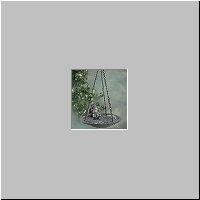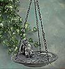 Item # 29085 Birds will flock to this alabastrite,celestial bird feeder. In stone finish with sun/moon/stars design, it hangs from a black metal chain to length of 12". Cherub 2 1/4" high. Dish 7 1/4" diameter. $9.95 |