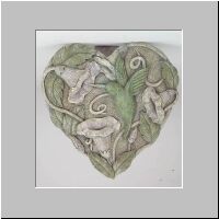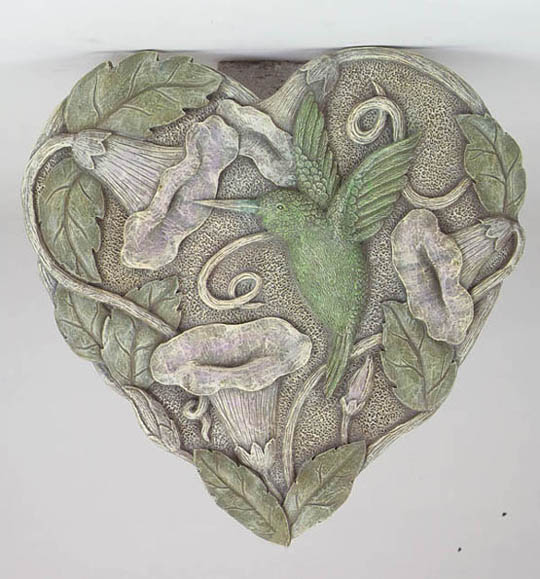 Item # 29502 A lovely, heart-shaped plaque with hummingbird and morning-glories has the appearance of being carved from stone, but is really lightweight enough to easily hang anywhere. 11 3/4" x 12 1/2" x 1/2" thick. $11.95 |