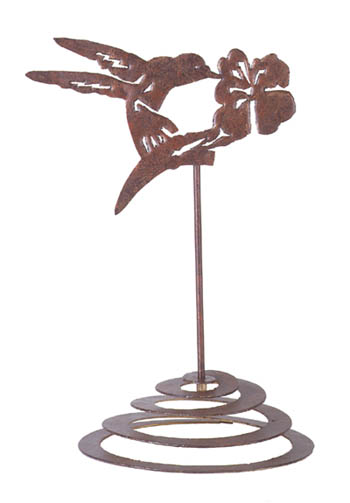 Item # 29646 A unique, rusted-metal technique gives this hummingbird and flower the look of an art piece straight out of a sculpture garden. With spring base. 8 1/2" diameter x 14 1/2" high. $9.95 |
