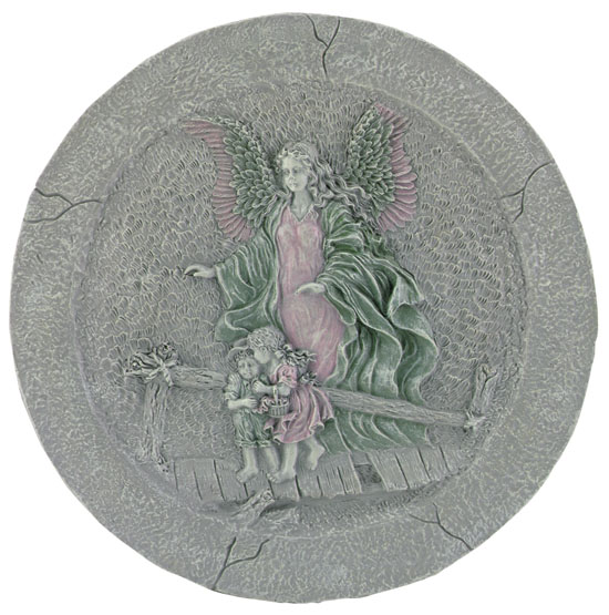 Item # 30098 Cast in alabastrite to resemble an aged stone plaque, this guardian angel tableau is suitable for indoors or out. 11 3/4" diameter x 1/4" thick. $11.95 |