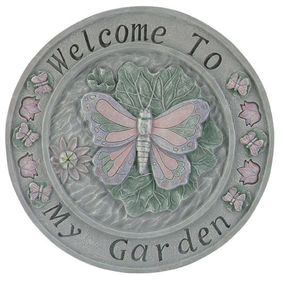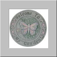 Item # 30099 A beautiful invitation to guests to visit your garden, this alabastrite plaque will grace any footpath or breezeway. 11 3/4" diameter x 1/4" thick. $11.95 |