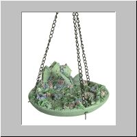 Item # 30102 A captivating garden setting is the theme of this alabastrite bird feeder. A spring-based butterfly adds a touch of animation to the piece. 6 3/4" diameter x 2 3/4" high. 11" chain. $9.95 Exclusive |
