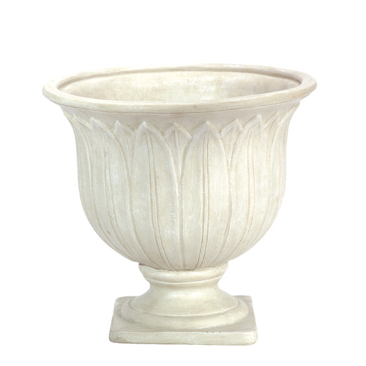 Item # 30730 NEW ! Cast in a stone-finish with a raised-leaf design, this planter is the perfect home for ornamental grasses and trailing plants. 7 1/4" diameter x 7" high. $14.95 |