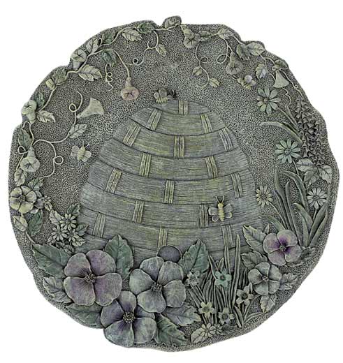 Item # 30792 NEW! Stone-finish, beehive design, wall-plaque boasts a flower-and-vine motif. 11 5/8" diameter x 3/8" thick. $11.95 |