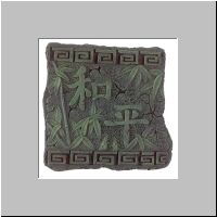 Item # 30793 NEW! Foresr green wall plaque with Chinese character proclaiming "peace". 8 1/2" x 9" x 1/2" thick. $9.95 |