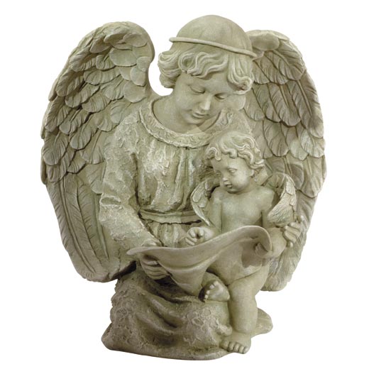 Item # 30797 NEW! Crafted in stone-finish with a greatly detailed and textured surface, this angel and cherub duo form an extraordinary tableau. 9" x 7 1/4" x 10" high. $27.95 |