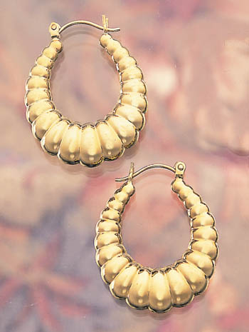 Item # 23265 14K gold scalloped puffed hoop earrings. 15/16 x 1 1/8". $89.95 pair |