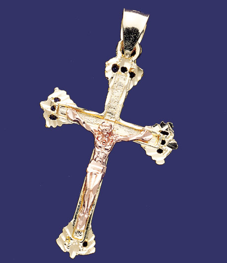 Item # 24075 14K gold two-tone diamond cut cross pendant with Christ. 1 11/16 x 1". $89.95 |