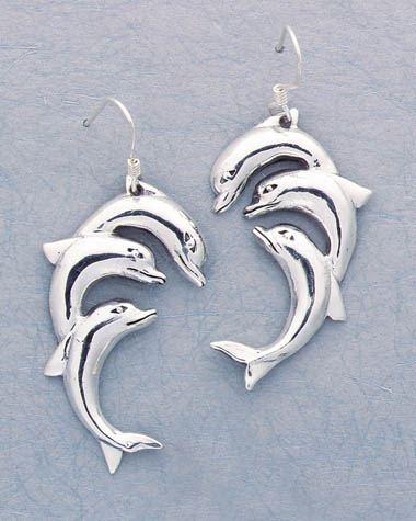 Item # 24702 Leaping dolphin trio,earrings with hook style backs. 2" x 13/16". $19.95 pair |