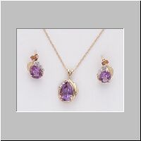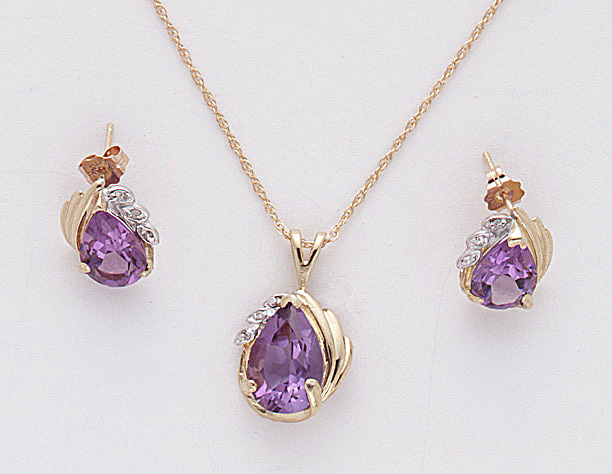Item # 27472 10K gold amethyst/diamond earrings and pendant with chine set. 10 x 7mm earrings, 12 x 8mm pendant (5.90 carat TGW, 4 points TDW). $199.95 set |