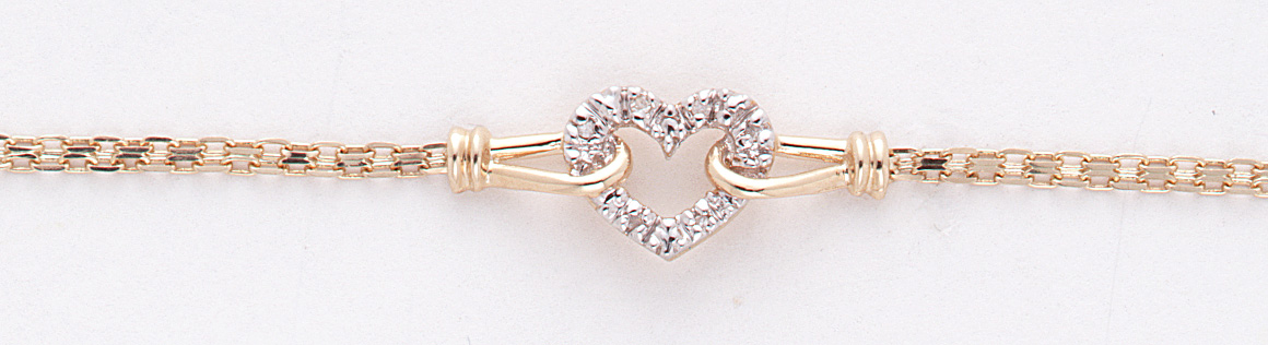 Item # 27478 14K gold diamond heart 7" Bismark bracelet,(2mm wide, 2.5 points TDW). $129.95 |