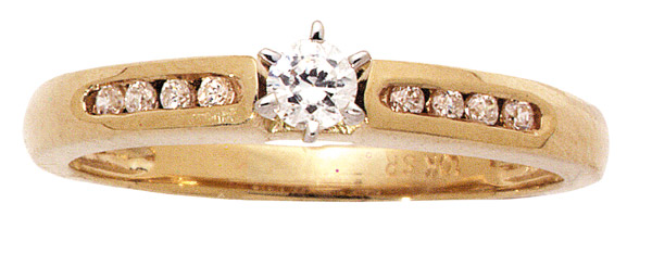 Item # 30169 14K gold diamond solitaire,channel set ring,(13 points TDW, center stone .10 carat TDW). $219.95 |