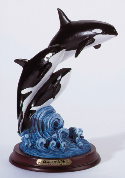 Item # 28118 A roving pack of killer whales courses through the cold waters of the Northern Pacific. 5 3/4" x 4" x 8 18" high. $27.95 |