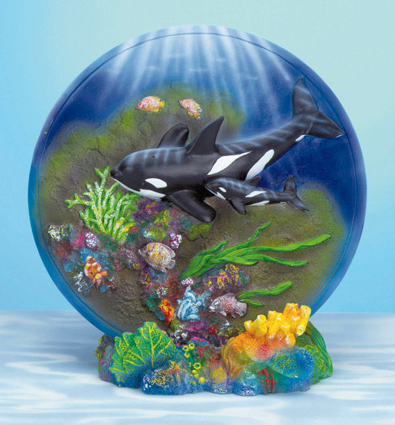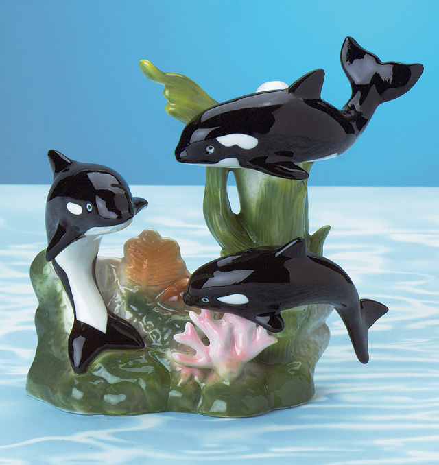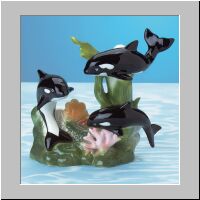Item # 28237 An awe insiring sight-unless you're a fish! A pack of killer whales cruise the reef, and chances are they're not just there to enjoy the beautiful colors! Porcelain. 7" x 3 1/2" x 6 3/8" high. $17.95 |