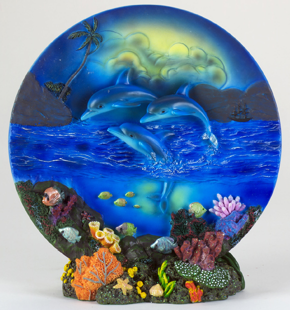 Item # 29007 Dolphins frolick above the deep on this collectors plate which sits on a coral design base. 7 1/2" diameter. $19.95 |