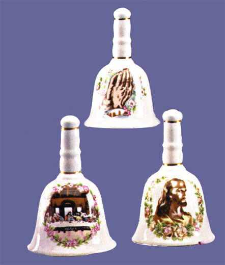Item # 21127 Inspirational porcelain dinner bells. 4" high. Set of 3 Regular price: $9.95 Sale price : $8.45 |