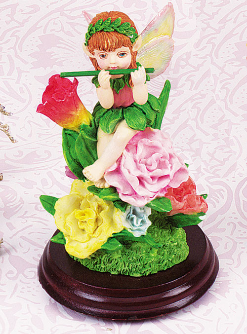 Item # 25508 This doe-eyed, elfin eared fairy plays her reed flute atop her pearch of colorful roses. She's an Avery Creation, exquisitly detailed in alabastrite. 3 1/8" x 4 1/2" high. Exclusive Regular price: $12.95 Sale price: $11.00 |