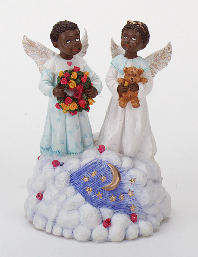 Item# 27290 Child angels,standing on clouds,hold symbols of earthly affection.Alabastrite.Tune: "AmazingGrace." 4 1/4" x 4 3/8" x 6" high. Regular price:$24.95 Sale price:$21.21 |
