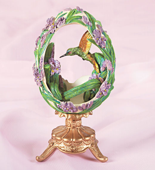 Item # 28128 A wonderfully decorative egg filled with springtime scenery, includinga bright, beautiful hummingbird and brillant flowers. Tripod stand. 21/2" x 2" x 41/2" high. Regular price: $19.95 set Sale price: $8.45 |