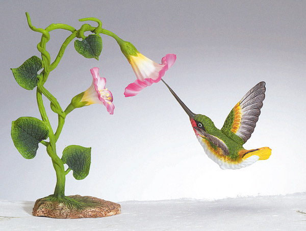 Item # 28161 The sweet nectar of a blossoming morning-glory calls forth this fabulous porcelain hummingbird. 8 3/8" x 3" x 6 3/8" high. Regular price: $27.95 Sale price: $23.75 |