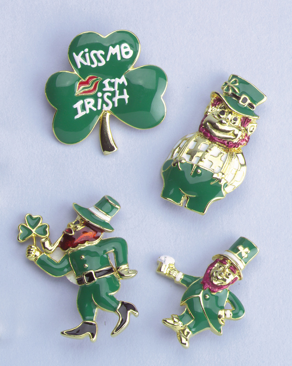 Item # 28471 Gold- plated enamel pins to celebrate St. Patrick's Day. Assorted styles.Largest is 2" high. Regular price $4.95 Sale price: $4.20 |
