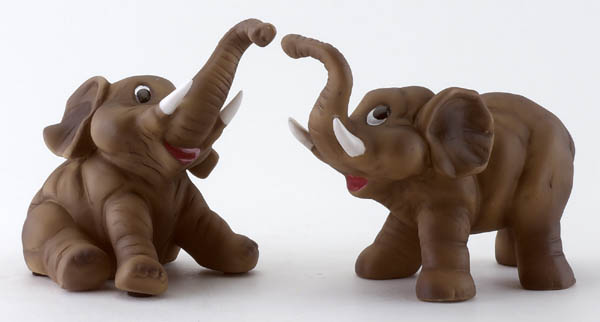 Item # 20591 This pair of porcelain elephants makes a cute couple! Standing 4 1/2" high, 7" long; sitting 4 1/4" high, 3 1/2" long. $16.95 a pair |