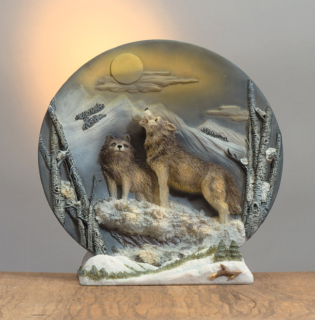 Item # 29559 A song to the moon is being sung by this wolf while its mate listens in. A fine, hand-painted addition to your plate collection. 7 1/2" diameter. $19.95 Exclusive |