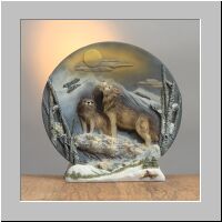 Item # 28134 What a unique and moving collector's treasure! In a setting that vividly recalls the early days of America, two stately wolves strike a pose of fierce independence. A wonderful 3-dimensional portrait on a plate. Stand included. 6 3/4" diameter. $19.95 |