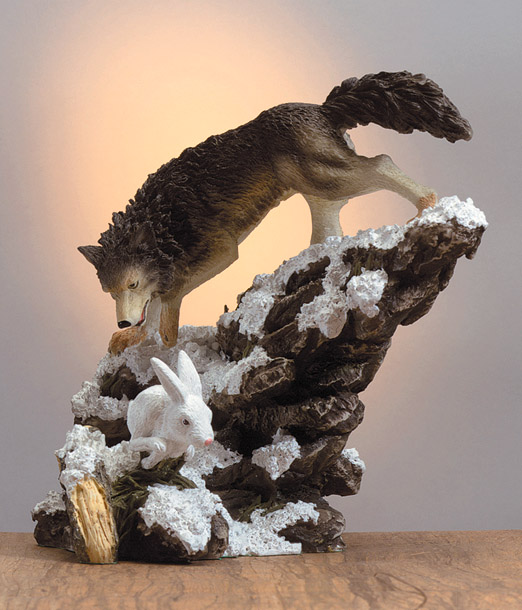 Item # 28136 It's a race for survival that's been going on as long as time itself-the hunter, and the hunted. An action-packed,dramatic scene captured in hand-painted alabastrite. 5" x 6 1/2" x 6 1/4" high $24.95 |