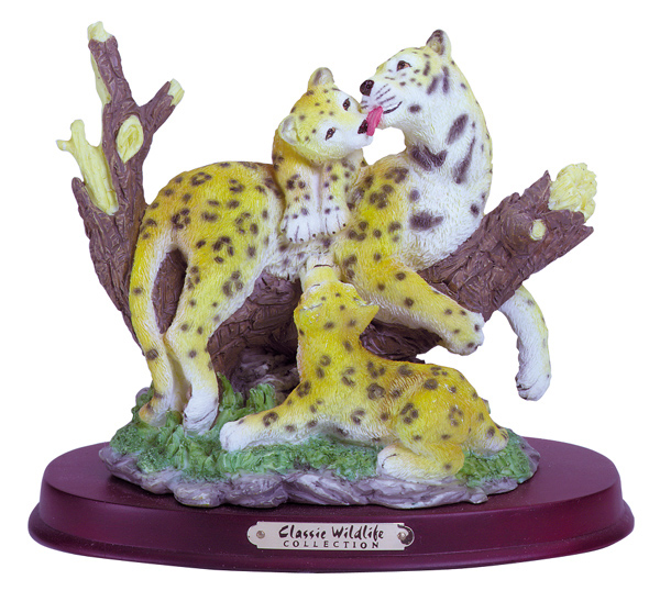 Item # 29017 In a quiet moment after the dangers of the hunt have passed, a mother leopard bathes and caresses her cubs. 7" x 4 1/2" x 5 5/8" high $ 24.95 |