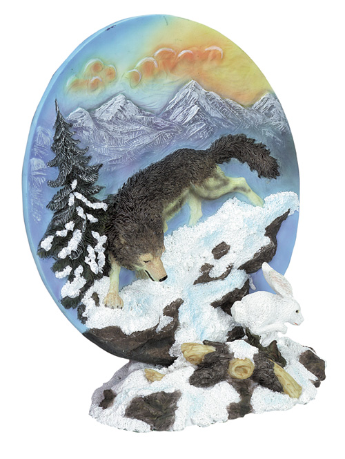 Item # 30076 Fleetness of foot will determine the outcome of theis wintery chase between the hungry hunter and its timid prey. Classic Wildlife Collection. 7 1/2" diameter $19.95 Exclusive |